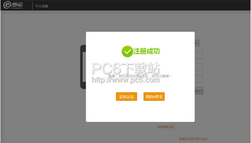 3、点击【下一步】成功后,即表示注册成功,您可以点击【实名认证】选择继续实名认证或者点击【我的e签宝】直接进入e签宝。