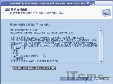二、软件使用 笔者是能过微软件下载中心下载的安装文件,文件只有260K大小,文件下载完成后,双击运行,这时弹出“最终用户许可协议”窗口(如图1所示)。