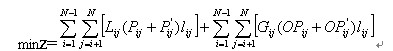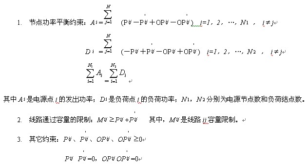 网络中所有原有线路的年运行损耗费用;第二项为所有新建线路的年费用(总投资*投资效益系数+年运行损耗费用);P 、P 分别为现有线路上由i流向j和由j流向i的有功功率;OP 、OP 分别为新建线路上由i流向j和由j流向i的有功功率;l 为线路长度;L 为原有线路的损耗系数;G 为新建线路的投资乘投资效益系数加上损耗系数。
