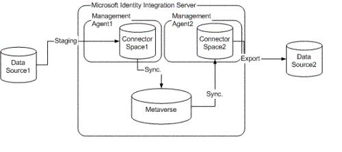 Metaverse是存放传输到其他数据库的数据的地方。数据离开连接器空间、进入Metaverse的过程称为映射(projection)。管理代理通过以下操作控制数据进出连接器空间: