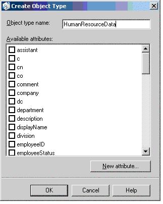 用Metaverse Designer更新Metaverse正如上面所讨论的,Metaverse是对象进出的中转站。Metaverse中包括您想与其他系统集成的数据。在Metaverse中,您必须创建两样东西:对象及其属性。当您从Metaverse Designer工具中选择"创建对象类型"选项,就会弹出下面的对话框: