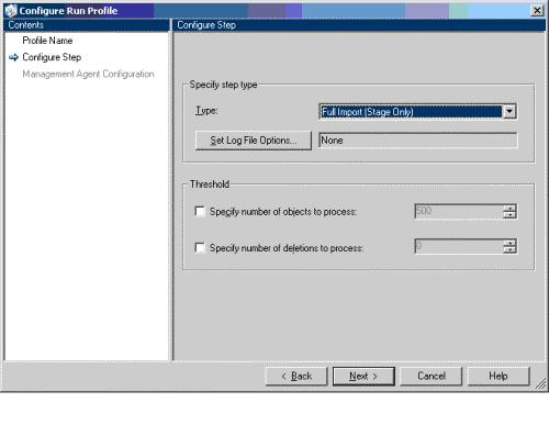 管理代理通过运行概要文件控制导入、导出和同步。运行概要文件包括一系列称为步骤的操作,步骤可以合并或者分离。下图显示了运行步骤的配置屏幕: