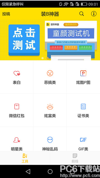 1.进入装逼神器APP,在首页找到童颜测试机点击进入