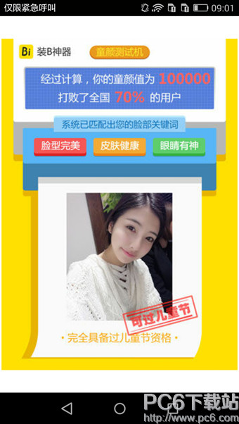 效果嘛,哈哈其实就是一个整蛊软件,一般情况下测试出来都是符合童颜有资格过六一,不过这么有趣的测试当然要玩一下啊!