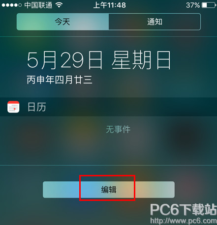 一、首先解锁iphone之后下拉屏幕,我们会调出通知栏页面,在其下方点击一下【编辑】