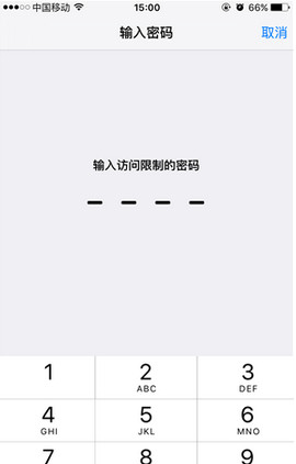 2.由于之前打开了访问限制功能的时候,是需要设置密码的,所以这里要输入四位数字密码以后才可以进入。密码是自己设置的,有可能与你的锁屏密码一样,也有可能是其它的。