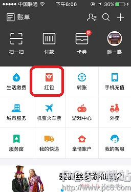 1.打开支付宝,点击“红包”