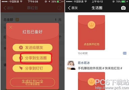 4.接着按照提示输入支付宝支付密码,再点击“分享到生活圈”即可将红包发到生活圈了,打开生活圈就能看到刚才发的红包了