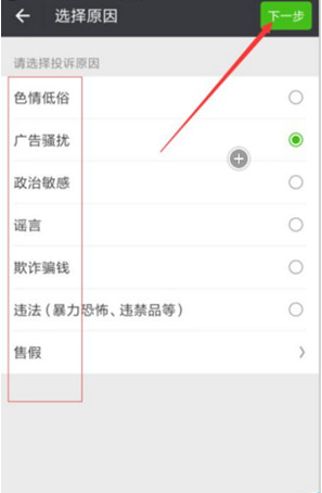 2.这么多投诉原因,根据情况选择一种。一般就是广告,垃圾信息,诈骗等