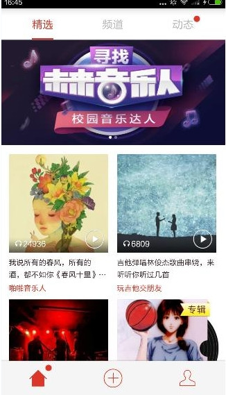 1、用户打开啪啪音乐圈首页后,就可以直接在首页里看到其他用户分享的各种音乐录音
