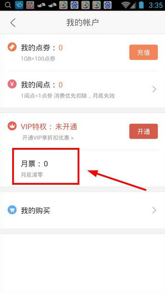 2、在“我的账户”中点击“开通VIP特权”就可以获得一定的月票了哦。月票作为站内稀有的评价道具,只有动漫VIP用户才能够获得。VIP用户每月一共可以获得5张月票,开通会员当天将立即获赠5张月票之后每月1日将会收到系统自动派发的5张月票,本月剩余月票将于次月1日清零。注:月票一律当月有效,过期清零,不可延期使用哦。