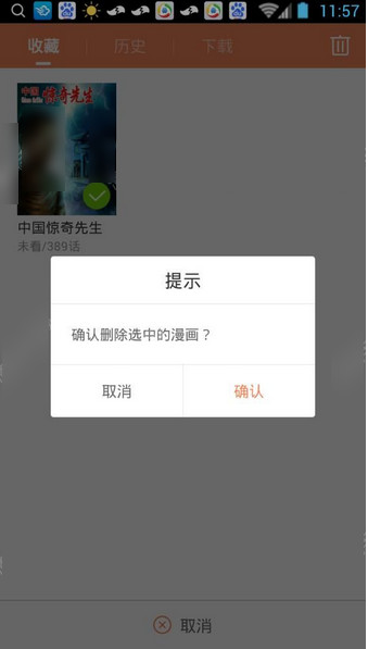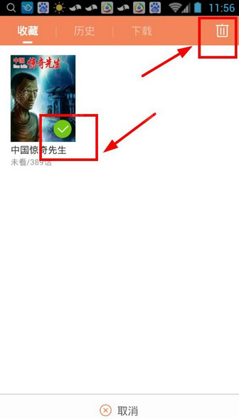 2、选中将要取消收藏的动漫,例如《中国惊奇先生》,点击右上角的“删除”按钮;