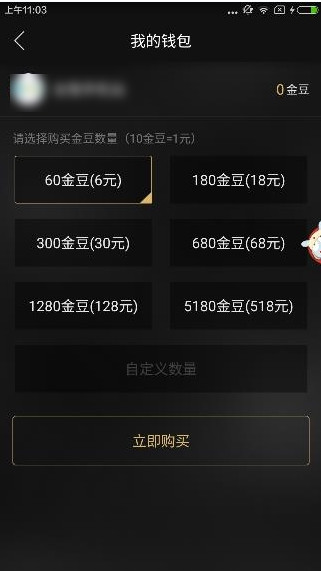 3、如果账户没有剩余的金豆,也可以点击“充值”,进行金豆充值