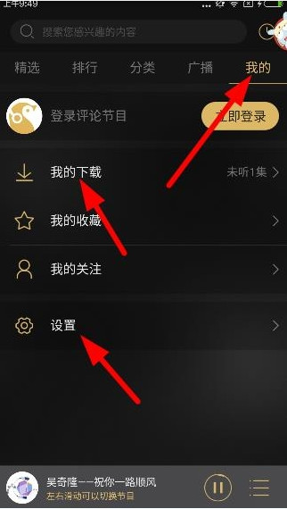 1、进入企鹅fm,点击“我的”,可以直接在“我的下载”里找到下载资源,另外,用户也可以点击设置