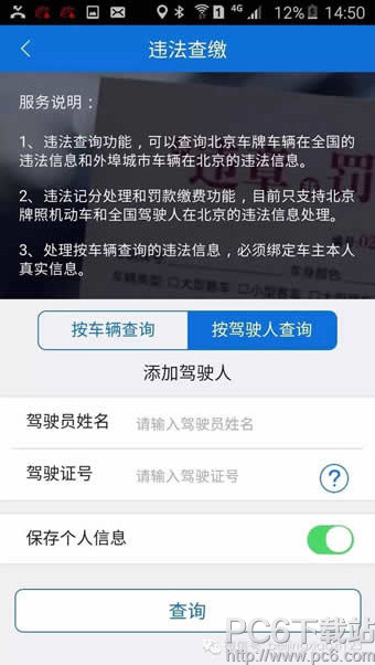 2.违法查缴的功能简单易用。分为按车辆查询 和 按驾驶人查询。你可以根据自己的需求填写先关内容,并查询