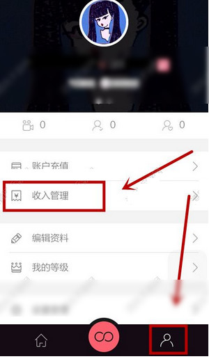 1、打开咪嘻TVapp,在“我的”中点击“收入管理”按钮;