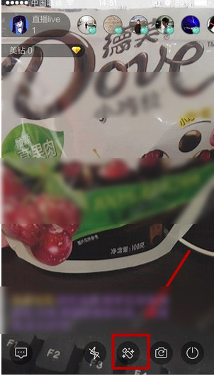 3、在直播页面中点击下方的“美颜”按钮就可以一键开始美颜了,强大的美颜效果可以让你每分每秒都保持好气色哟!