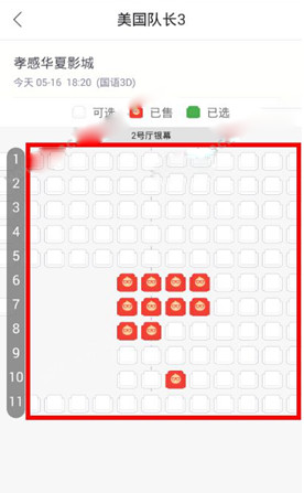 2.选择场次,就是观看的时间,点击购票,进入到选座界面中,选择座位;在15分钟内完成付款,比如下午购买的晚上场,会提示购买后不可退换