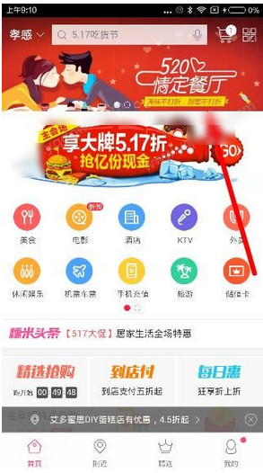 1、用户打开百度糯米后,点击上方的520情定餐厅
