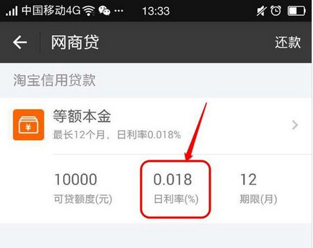 作为一款贷款服务,网商贷是需要算利息的,网商贷的还款最长期限为12个月,贷款日利率是0.018%,随借随还,1万元的年息总额348.15元,是不是太划算啦。
