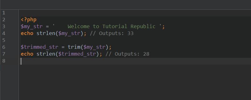 echo strlen($trimmed_str); // Outputs: 28