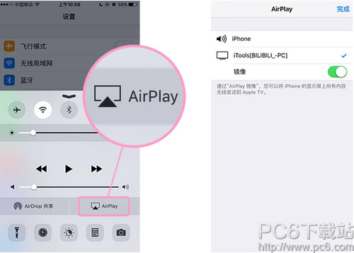 2. 上划手机状态栏点击Airplay,点击后选择对应Airplay镜像,电脑就会出现手机画面啦!