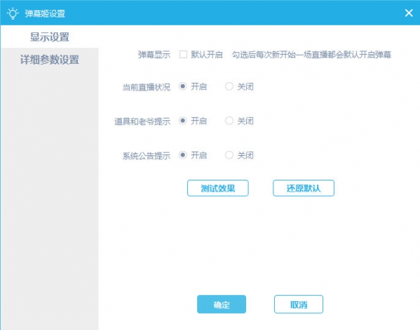 进入"弹幕姬"按钮可以开启弹幕姬以及设置弹幕姬显示与详细参数。