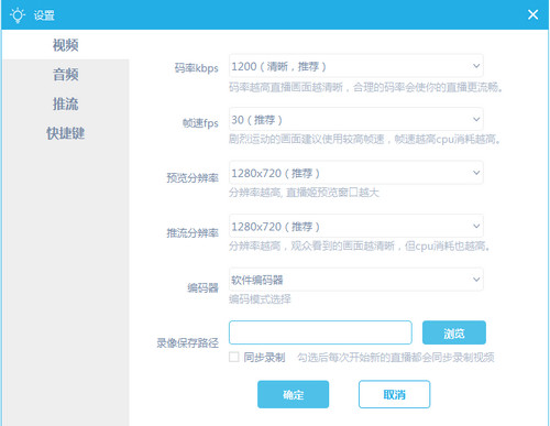 3.点击"设置"按钮可以调节视频、音频、推流与快捷键的设置