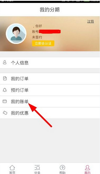 1、用户进入个人中心后,点击“我的账单”