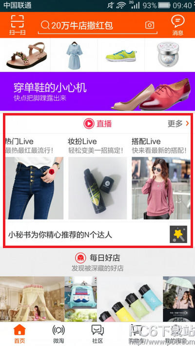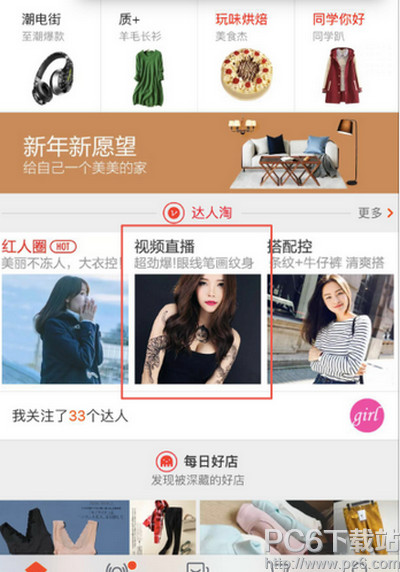 第二步,进入后,往下滑,找到“达人淘”-“视频直播间”