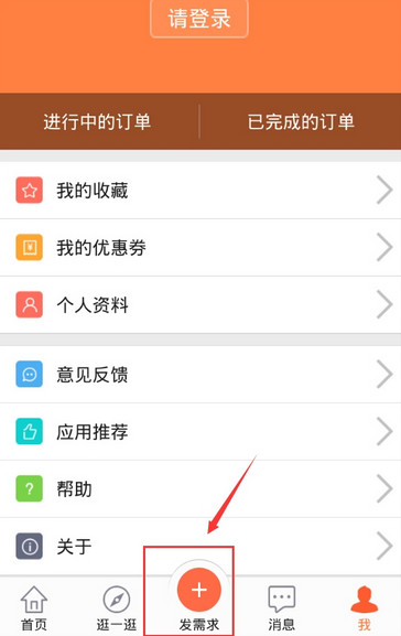 1、打开猪八戒软件后选择底部菜单栏的“发需求”按钮,进入需求的分类选项。