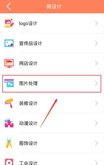 2、根据需求选择任意一个分类,比如“做设计”,进入后,选择子分类,比如“图片处理”。