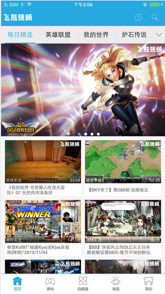 飞熊视频汇集了英雄联盟(lol),我的世界,Dota,dota2,单机游戏实况,射击网游,风暴英雄,炉石传说,坦克世界,游戏动画等多种游戏的视频。内容丰富无广告,还有视频抽奖活动,全力打造的游戏视频APP。这里是一群热爱各种游戏的玩家,喜欢那些分享快乐和激情的游戏主播,因此制作了飞熊视频,让大家能更好的查找、浏览、订阅、下载、观看自己喜欢的游戏和主播视频。