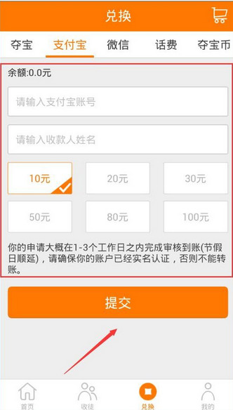 注:提现最低额为10元,申请后大概在1-3个工作日之内完成审核到账。