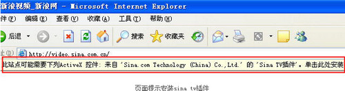 1、点击浏览器栏的提示,在页面进行sina tv 插件的安装: