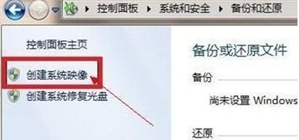 2.进入系统备份和还原界面后,点击左侧“控制主页”下面的“创建系统镜像”。