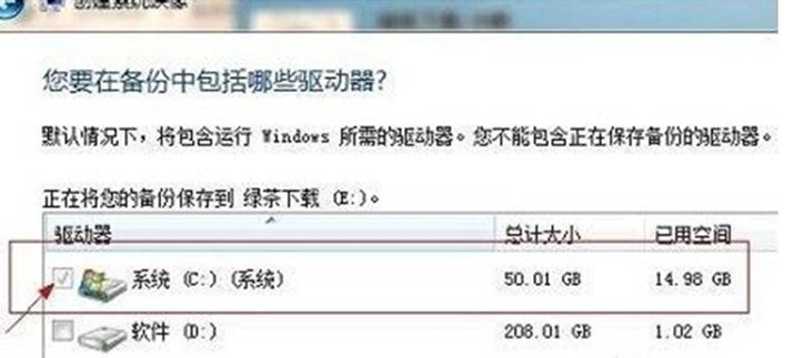 3.在弹出的“您想何处保存备份?”界面中选择系统备份文件保存的硬盘的位置(比如保存到E盘),然后系统要求用户选择备份的东西,这里可以选择系统和软件,一般初次安装了系统,都没啥软件,因此这里只勾选备份系统就OK了。