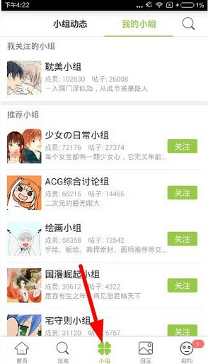 1、用户打开追追漫画客户端后,进入“小组”页面,选择要发帖的小组
