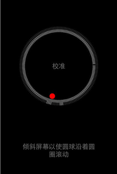 3.【校准】的操作就是将手机持水平放置,然后向四周轻微的转动屏幕,让屏幕中的小点点绕四周移动。