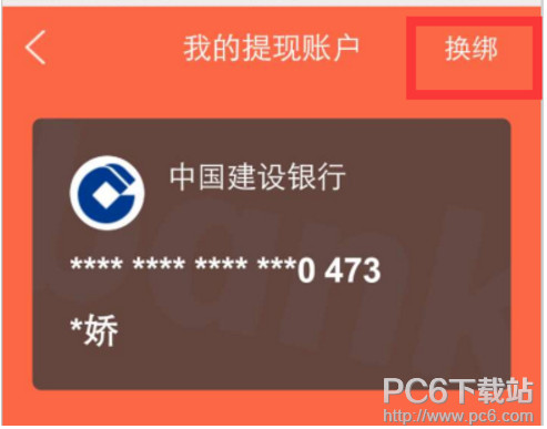我的提现账户---换绑,进入绑定银行卡界面重新绑定。.