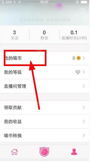 1、首先打开喵播,在个人中心的位置找到我的喵币位置点击进入。