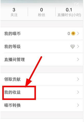 1、首先,打开喵播,在个人中心的位置找到我的收益。