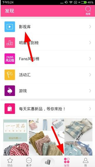 1、进入爱豆的“发现”栏目,然后点击“影视库”