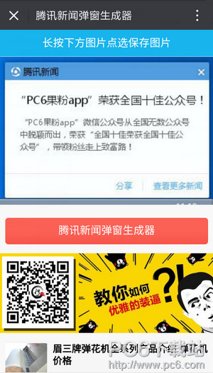 腾讯新闻弹窗图片怎么玩?腾讯新闻弹窗图片怎么生成?腾讯新闻弹窗是我们经常看到的一类弹窗系统,但是很多人不知这其实是可以生成的,那么腾讯新闻弹窗图片怎么玩?腾讯新闻弹窗图片怎么生成?下面pc6小编教你腾讯新闻弹窗图片怎么玩?腾讯新闻弹窗图片怎么生成?不知道腾讯新闻弹窗图片怎么玩的同学赶快看过来。