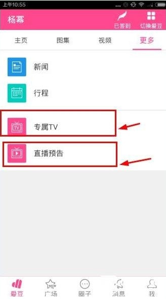 5、然后点击专属tv,你就可以看到明星直播,也可以边看边聊,也可以看到明星的直播预告。
