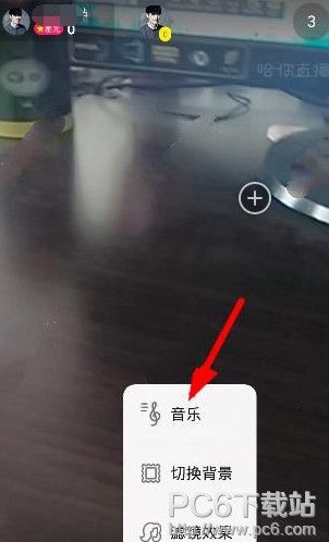 1、用户进入直播页面后,点击加号按钮,点击“音乐”,如下图: