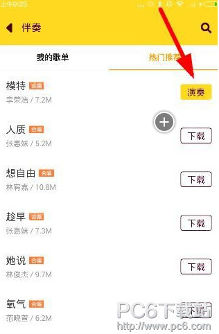 2、然后选择音乐点击下载,点击“演奏”,如下图:
