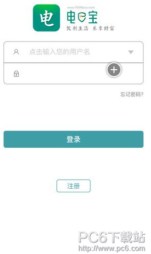 1、打开电e宝app,在登录界面,点击注册按钮: