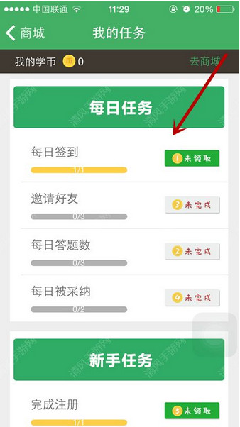 2、点击“做任务赚学币”按钮可以通过签到、邀请好友、每日答题等等来免费赚取学币哟!
