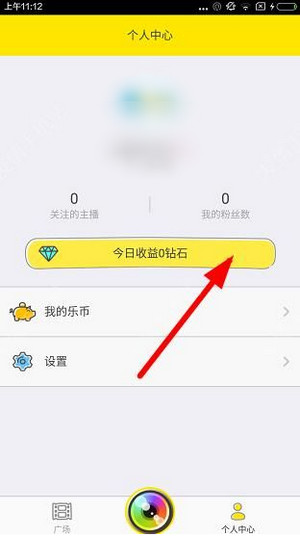 1、首先,打开哦乐直播个人中心,然后点击箭头所指的今日收益的位置。